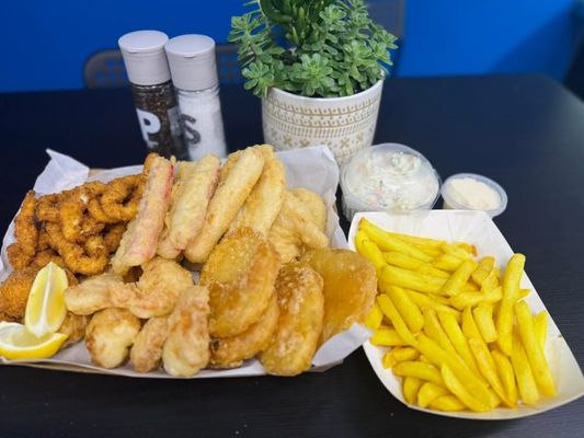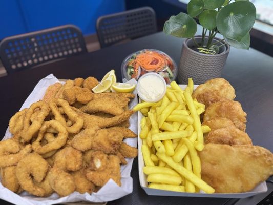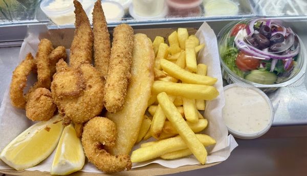 Indulge in freshly cooked seafood, from crispy platters to mouth-watering burgers, made to order just for you. Enjoy our daily-made salads, hot snacks, and special deals.
